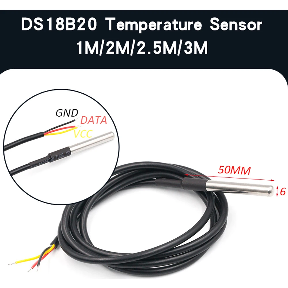 NTC 10K 1% 3950 Waterproof temperature Sensor probeFeatures:Stainless steel sheath and waterproofMeasurement range: -20 to 105 °CLength of wire: 10 meter or 5 meterSize of probe: 5 x 25 mmOutput: 2 wiresType: NTC 10k±1% 3950measure environmental temperatures using For Arduino ADC and this 10k NTC LINKResistance to temperature conversion table LINKB-constant : 3380K -/+ 1%Typical Dissipation Constant 5mW/ °CProbe insulation: >100MOhmPeak Voltage sustain time: 2 seconds, AC1800V 1mA 2 secondsStress sustain: 9.8N (1kgF) for 1 minute no deformation