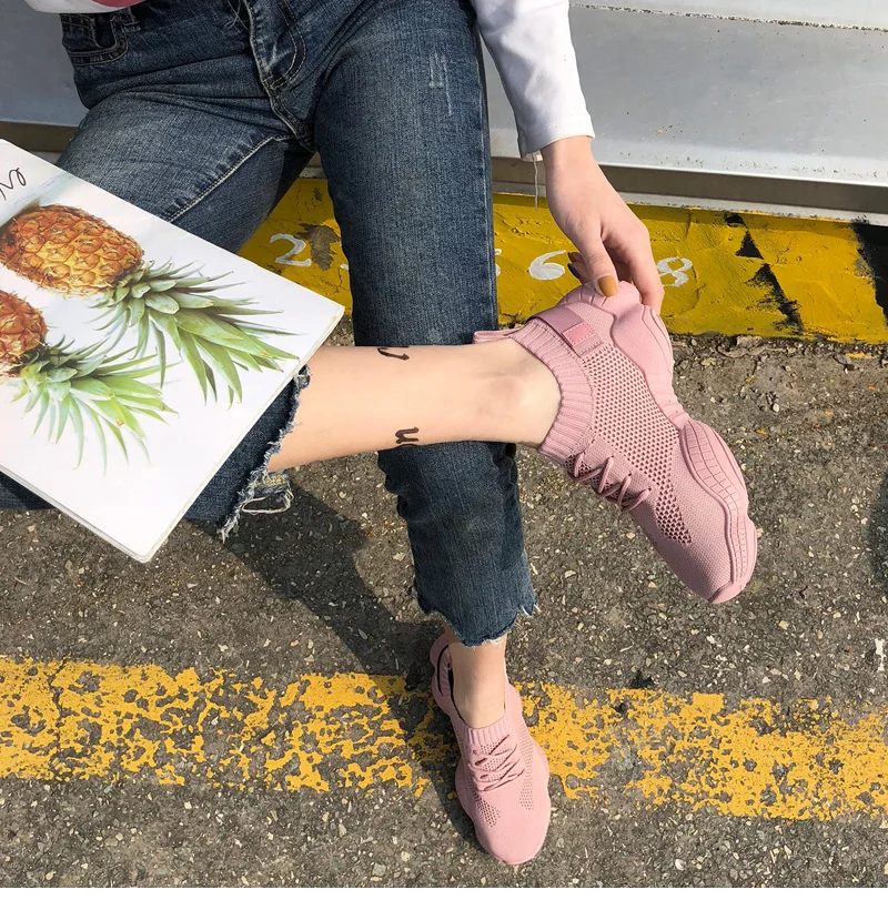 2021 женская обувь; Белые кроссовки; Женская модная брендовая обувь на платформе и без каблуков в стиле ретро; Женская обувь; Кроссовки из дышащей сетки розового цвета