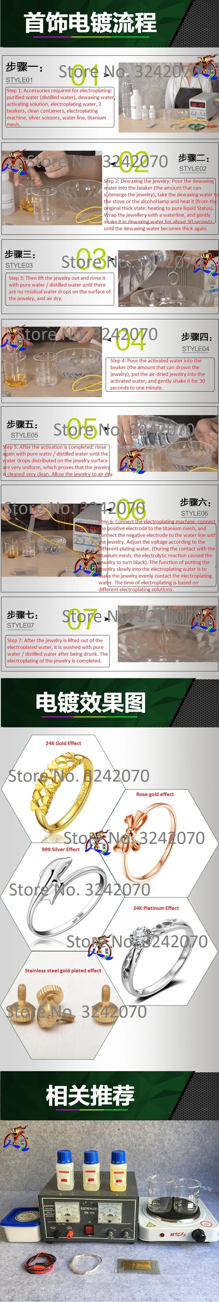 Эффект | 24K золота гальваническим воды, необходимо использовать вместе с установка для нанесения гальванических покрытии + titanium сетки, вы можете пластина слоем с покрытыем цвета чистого 24 каратного золота 18K золото/серебро ювелирные изделия: яркие цвета: желтый | ||