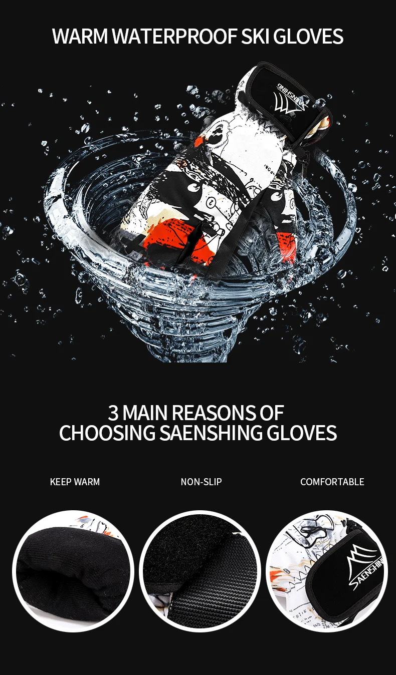 Женские и мужские зимние водонепроницаемые перчатки теплые спортивные