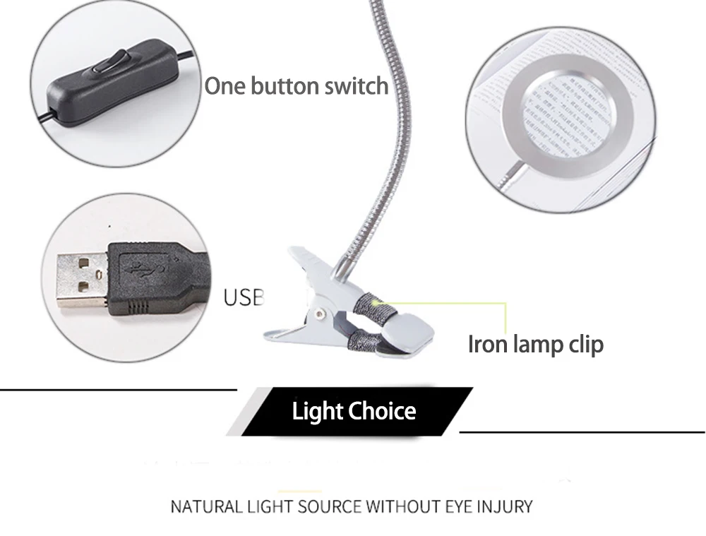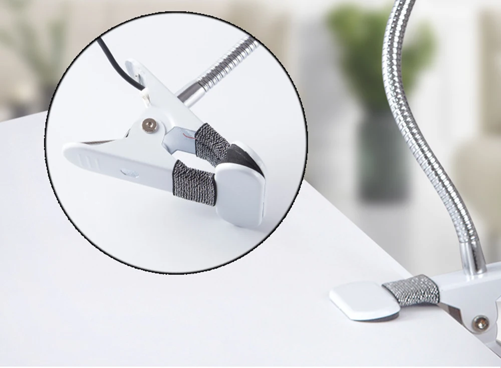 Зажим позволяет использовать его эффективно и растягивающаяся трубка позволяет увеличить площадь освещения и отрегулировать положение светильник по мере необходимости.