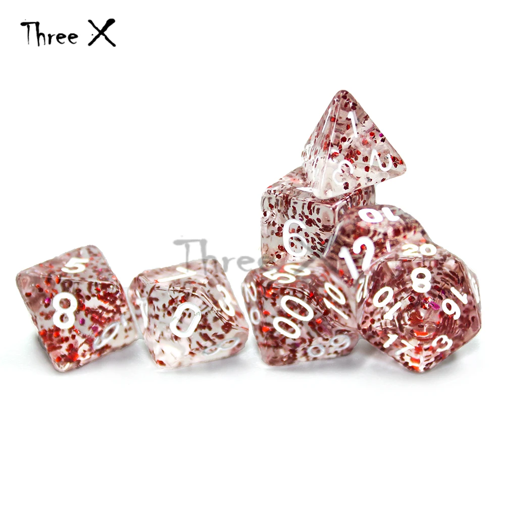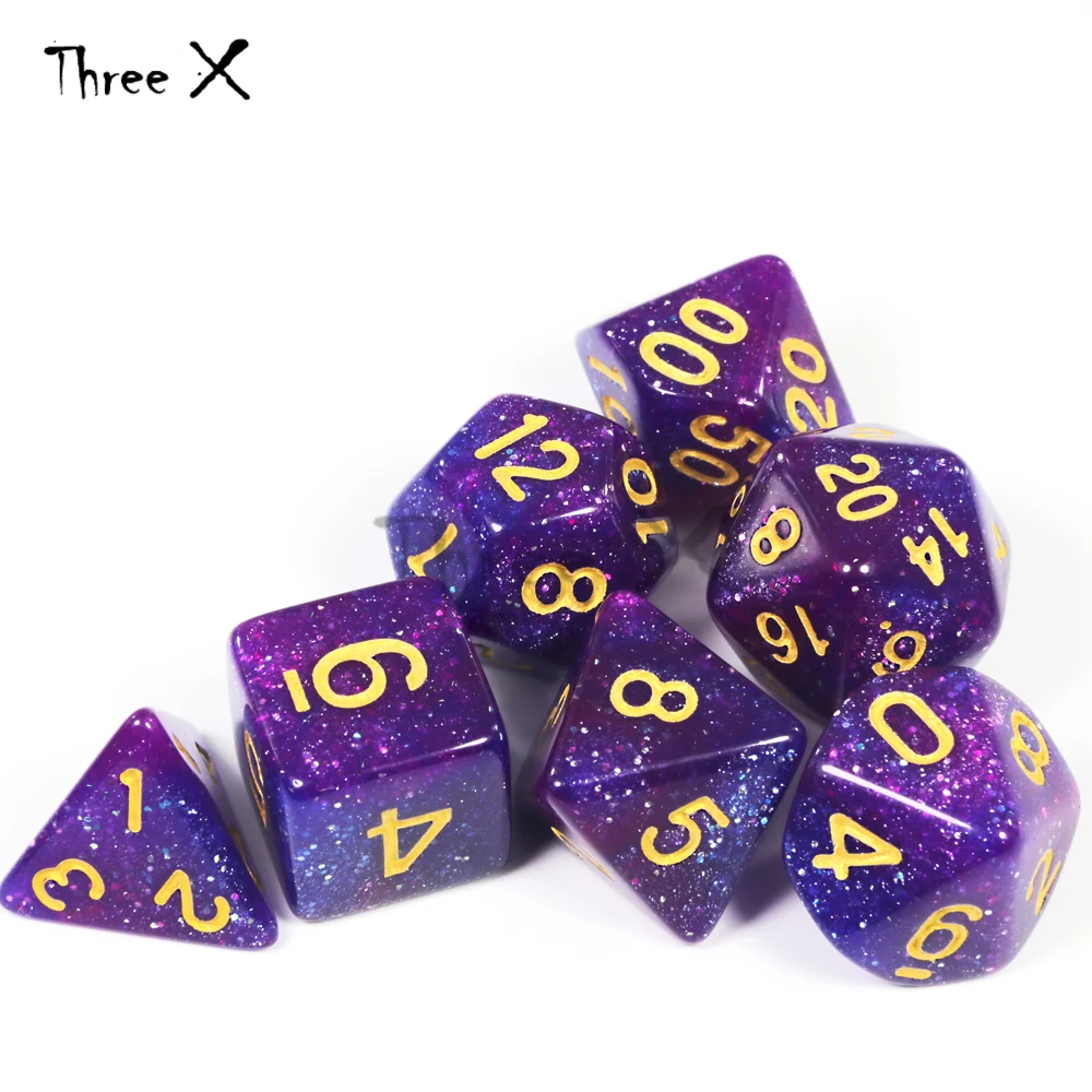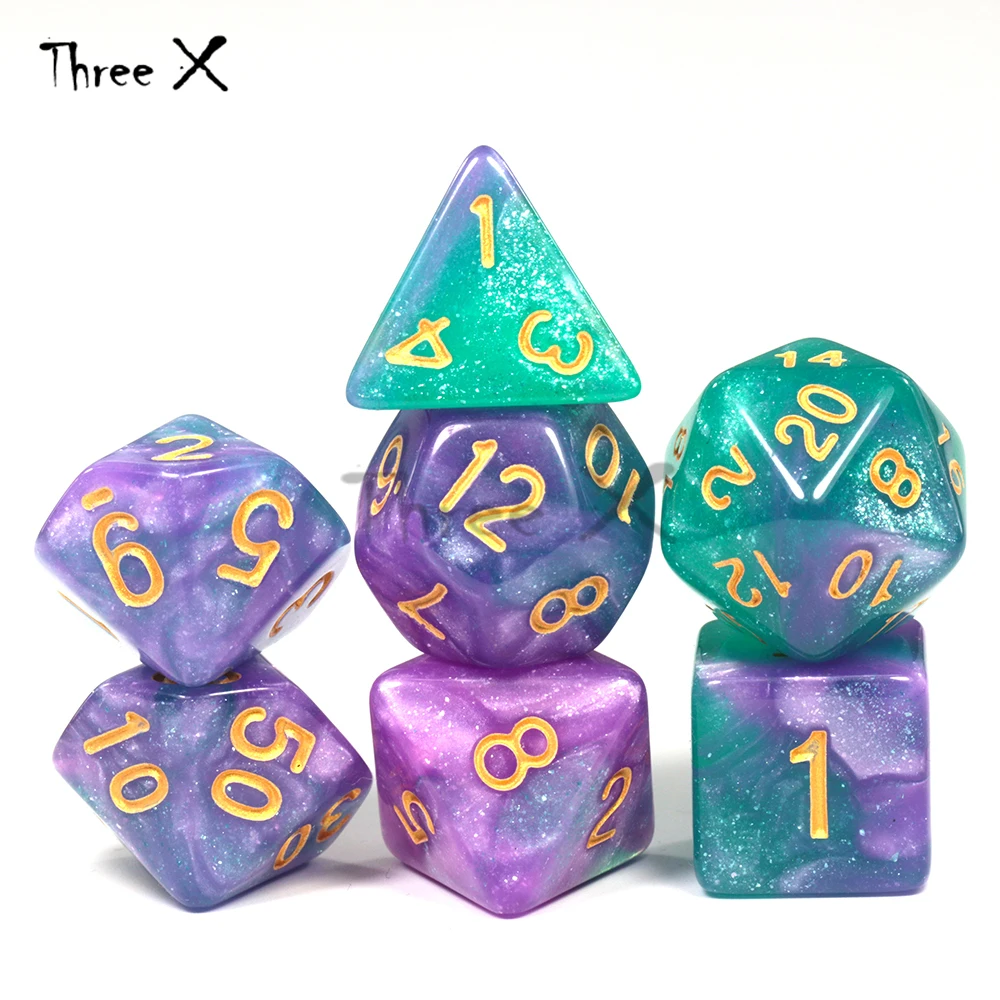 Dnd Rpg TRPG 7 шт./лот, блестящий порошок, потрясающий эффект, набор игральных костей D4,6,8,10,10%,12,20 для настольной игры, обучающая игра