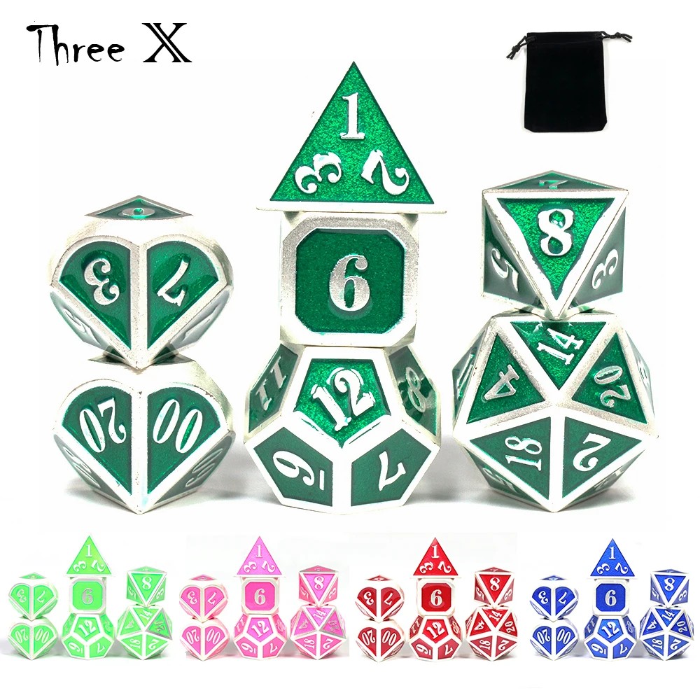 7 шт многогранные металлические игральные кости DND набор D20 коллективные кости для столешницы RPG и игр-поставляется с бархатной сумкой