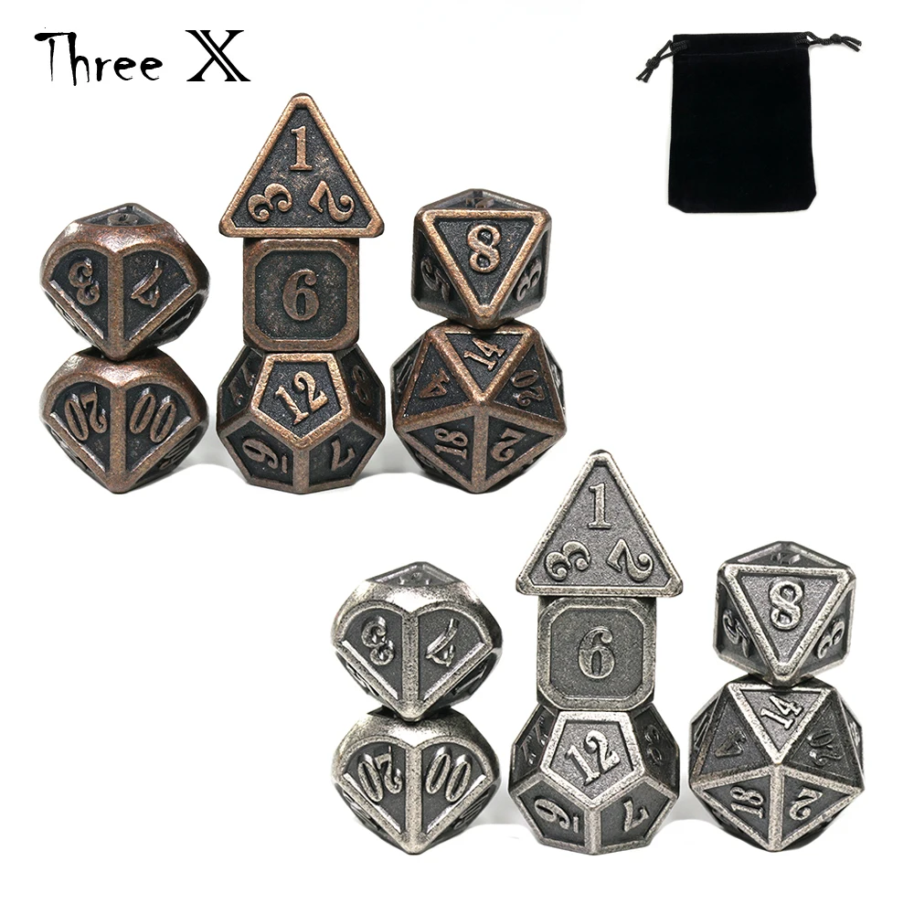Древний металлический набор игральных костей игра DND многогранные Твердые игральные кости DnD набор с сумкой для хранения и цинковый сплав с напечатанными цифрами
