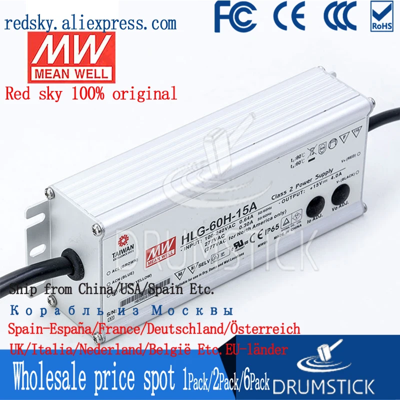 MEAN WELL Metal casing HLG-60H with PFC function 3 in 1 Dimming /C.V. or C.C./IP67 Single Output