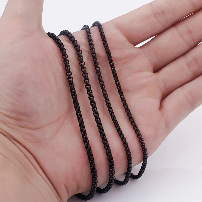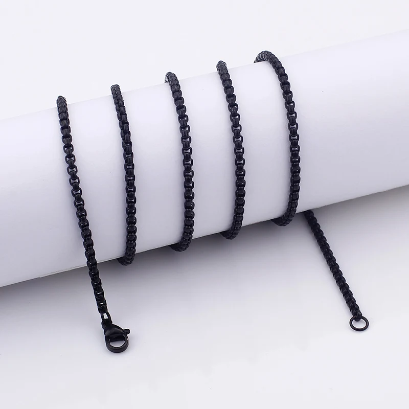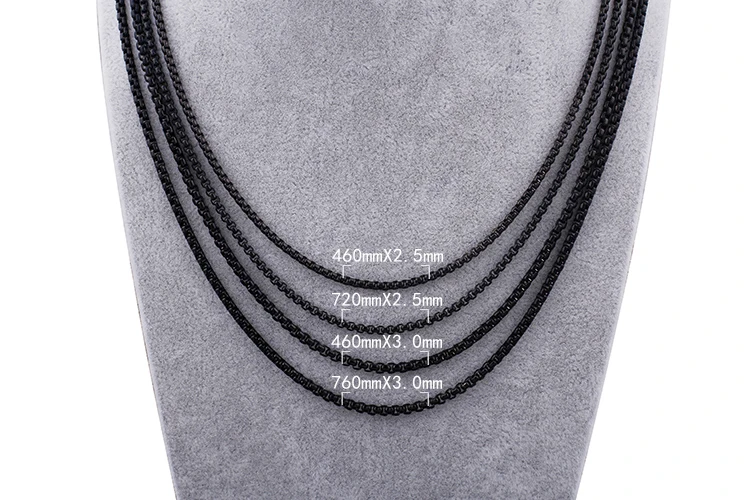 Ширина цепи: 2,5/3 мм Поверхность: черный цвет --- IP покрытие Материал: нержавеющая сталь с защитой от потускнения, водонепроницаемый, прочный и прочный Посылка: простая сумка