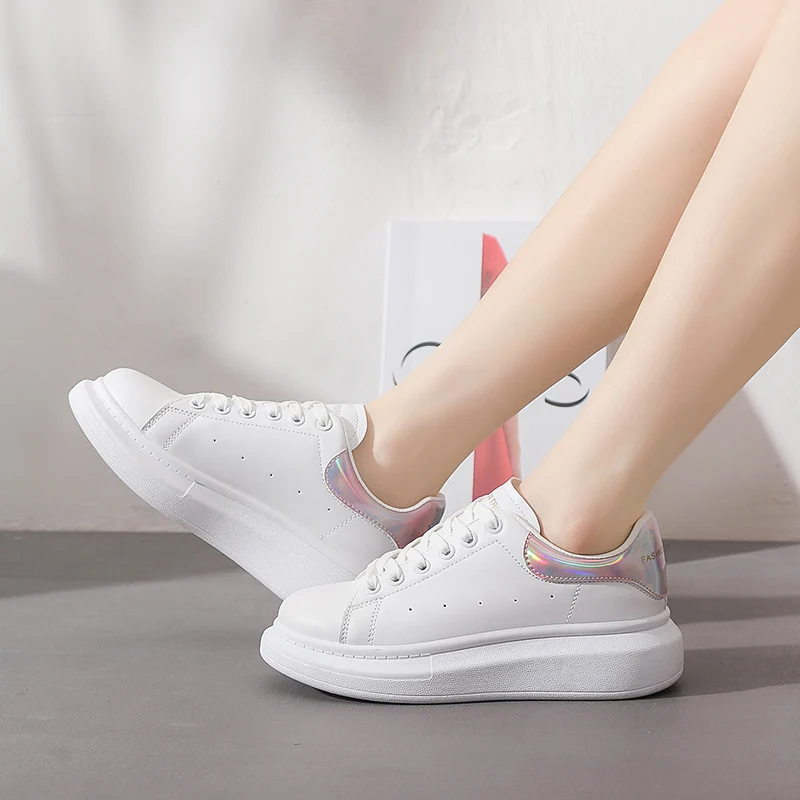 Женские кроссовки на массивной платформе повседневные серебристого цвета с