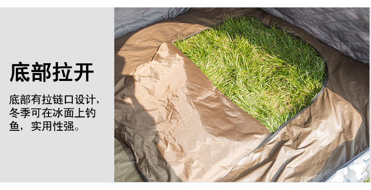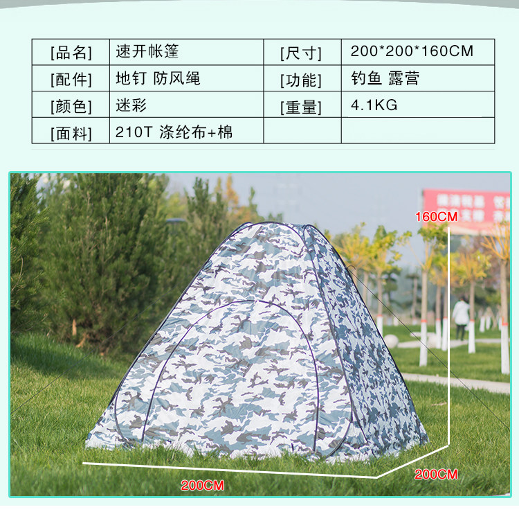 Размер: 200*200*160 см (выше) Материал: Камуфляжный брезент, белый хлопок = теплый и непромокаемый Функция: подходит для кемпинга 3-4 человек, подходит для 2 человек на подледной рыбалке. Аксессуары: 4 травяных гвозди + 4 ветряных каната