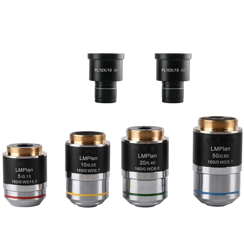 Объективные линзы | Длинная Рабочая дистанция плоское поле ахроматическая металлографическая цель (5X/0.13WD 15,5 мм, 10X/0,25 WD 8,7 мм, 20X/0,4 WD 8,8 мм, 50X/0.6WD 5,1 мм) |