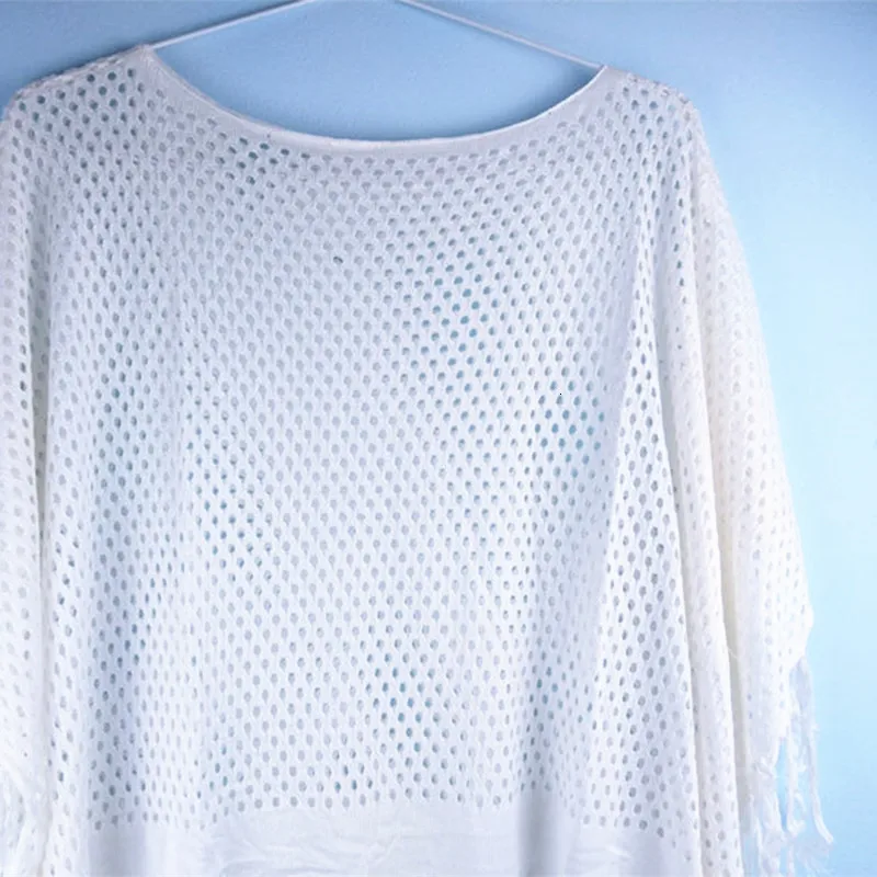 [NODELAY] Лето 2020, пляжный женский купальник, ажурный, вязанный крючком, бикини, накидка, белые, свободные, с кисточками, парео, Пляжное платье, туника