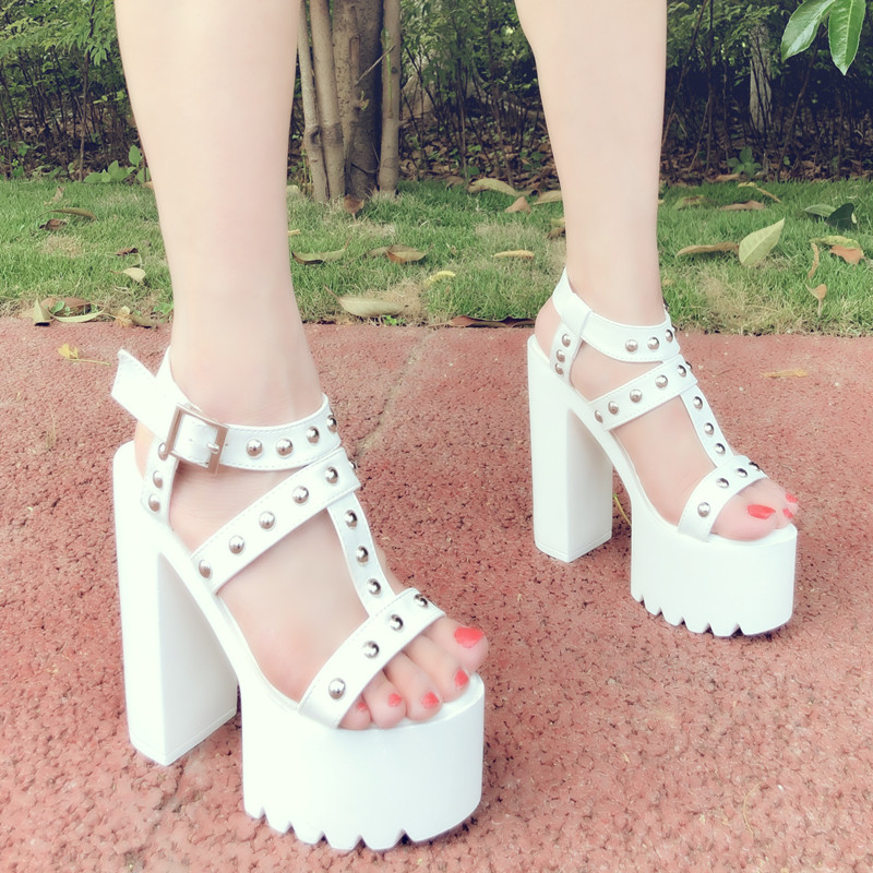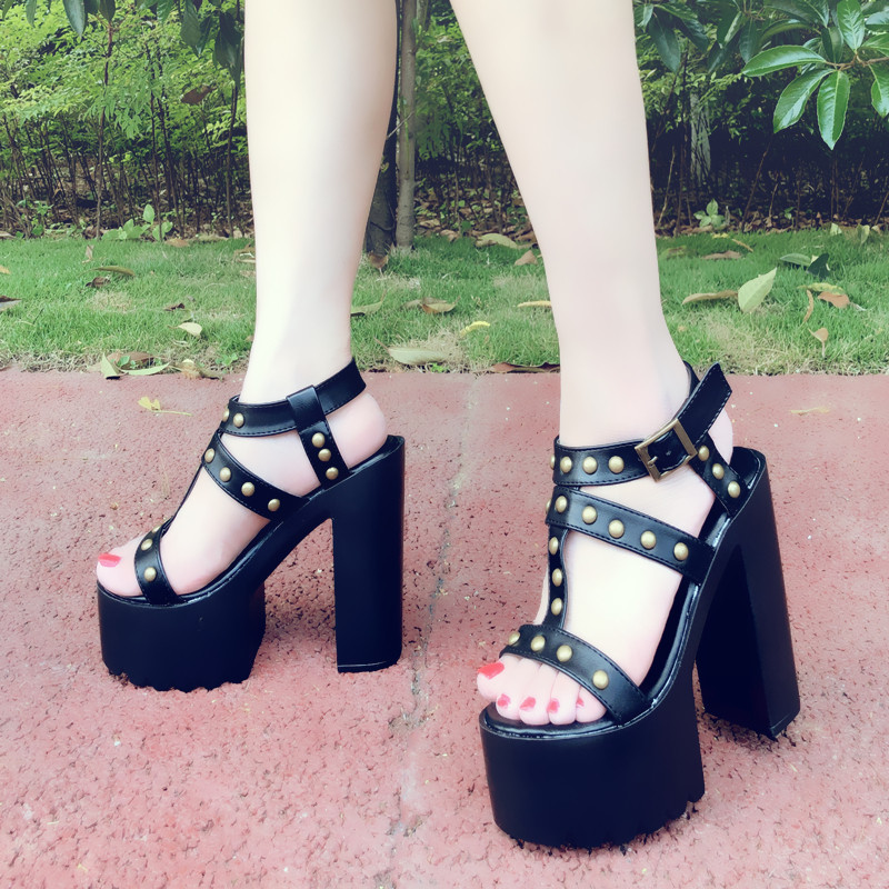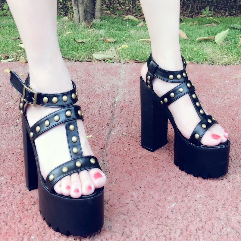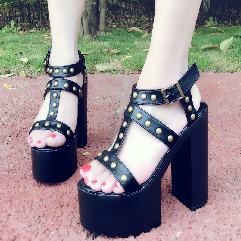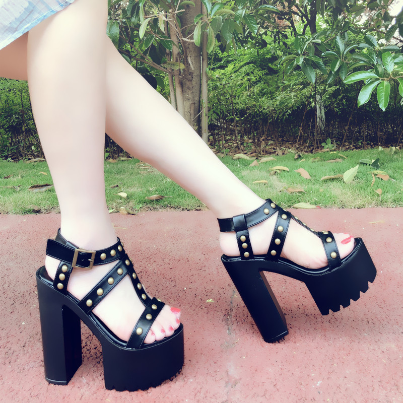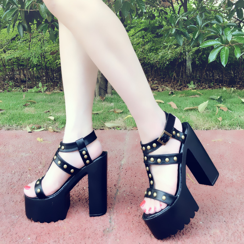 Высота каблука: около14См Высота водонепроницаемой платформы: около6См Примечание:Цвет заклепок случайный из-за различных партий продукции.