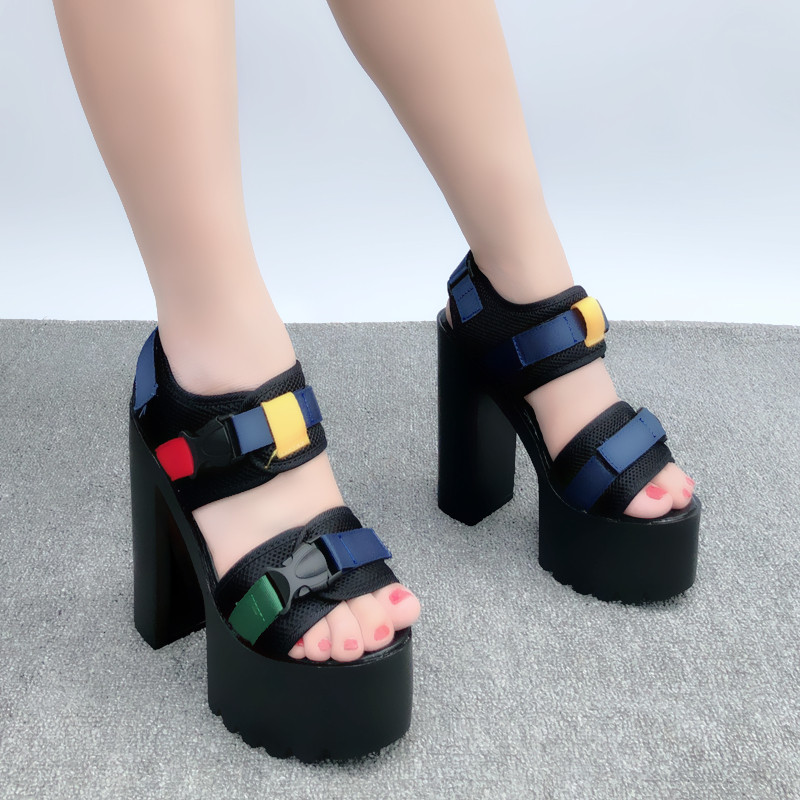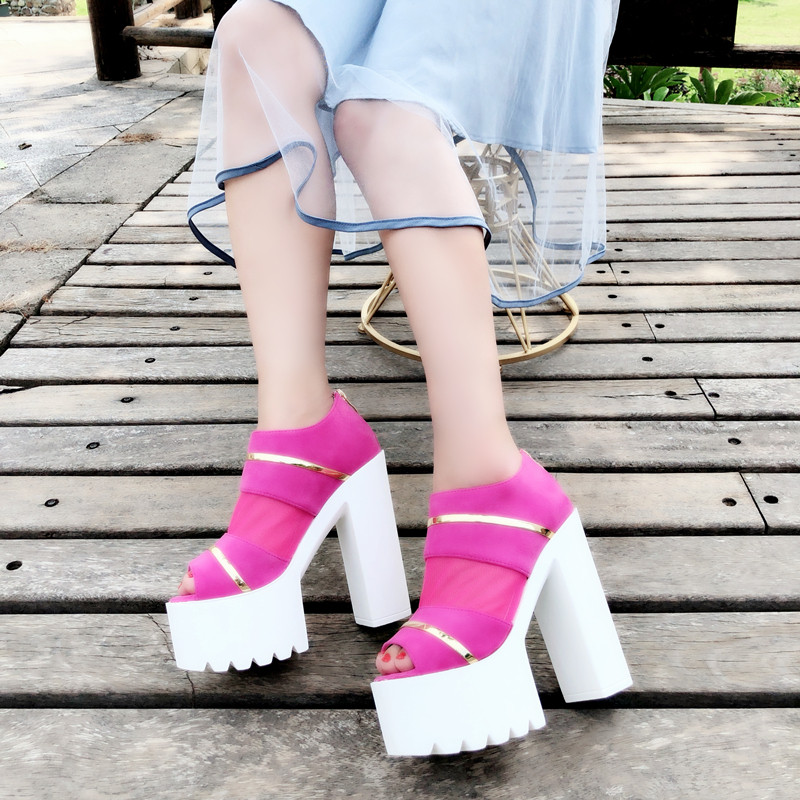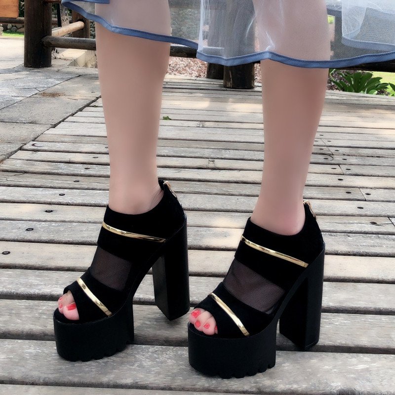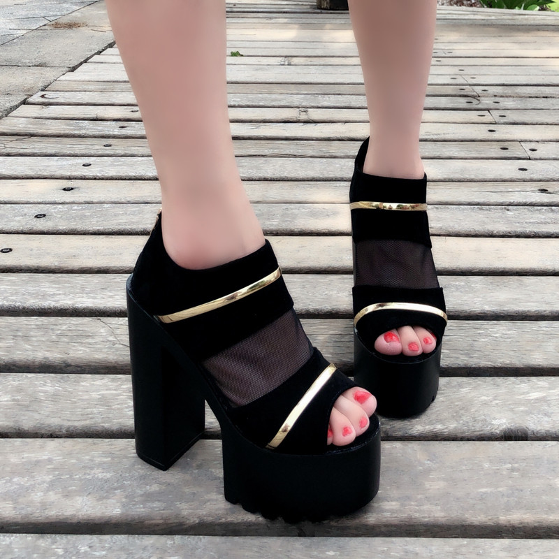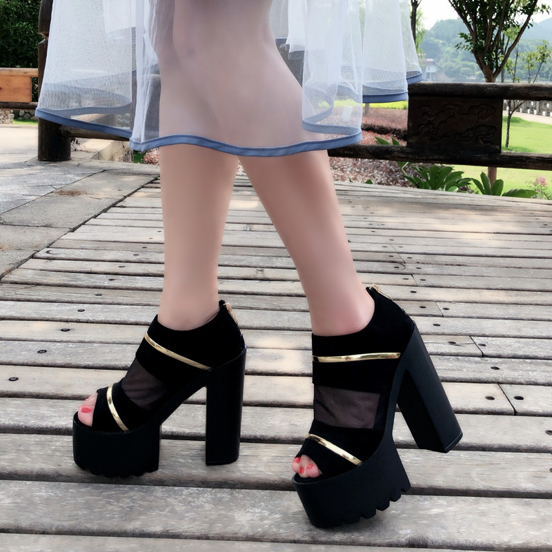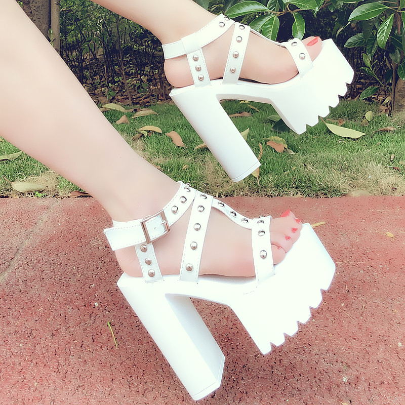 Высота каблука: около14См Высота водонепроницаемой платформы: около6См Примечание:Цвет заклепок случайный из-за различных партий продукции.