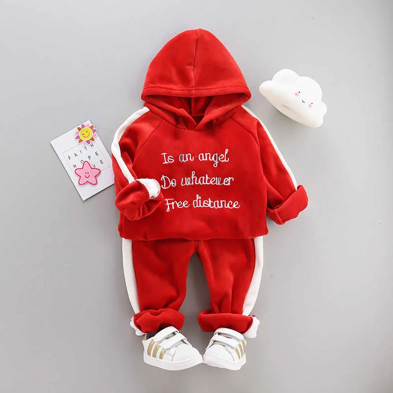 Новые осенне-зимние комплекты одежды для маленьких девочек и мальчиков детские повседневные толстовки с буквенным принтом и штаны 2 шт./компл., детская утепленная модная спортивная одежда для От 0 до 4 лет