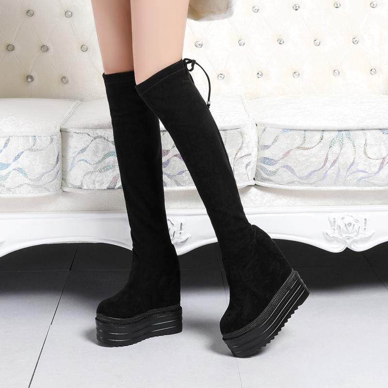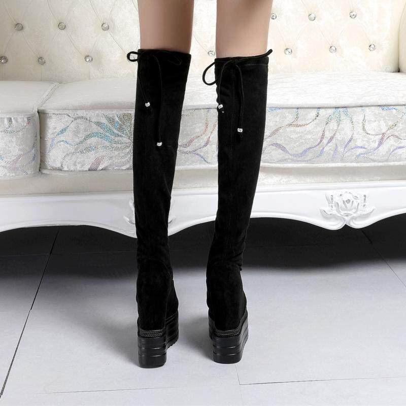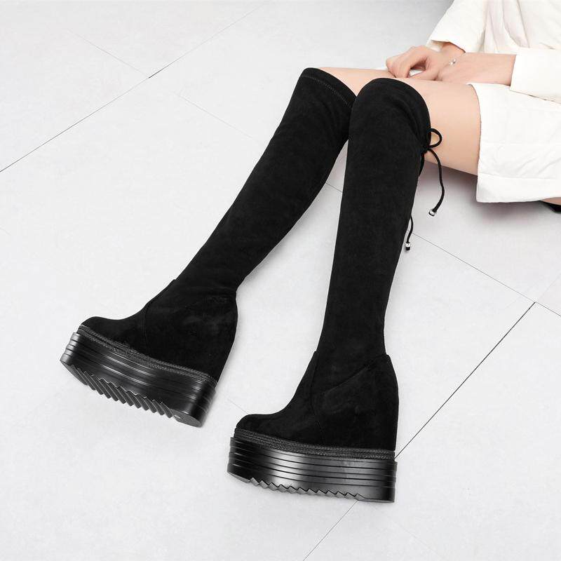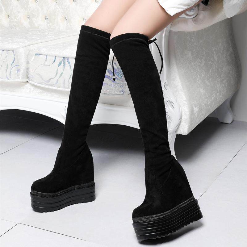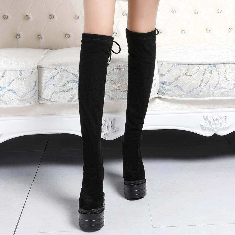 Красные замшевые сапоги выше колена с круглым носком женские модные высокие на