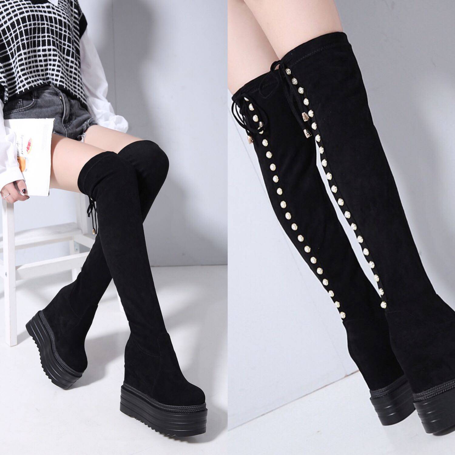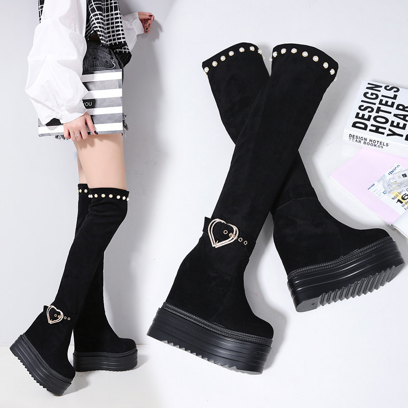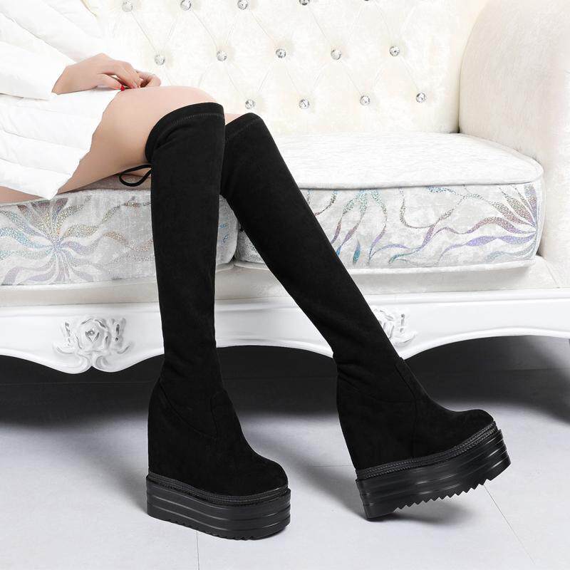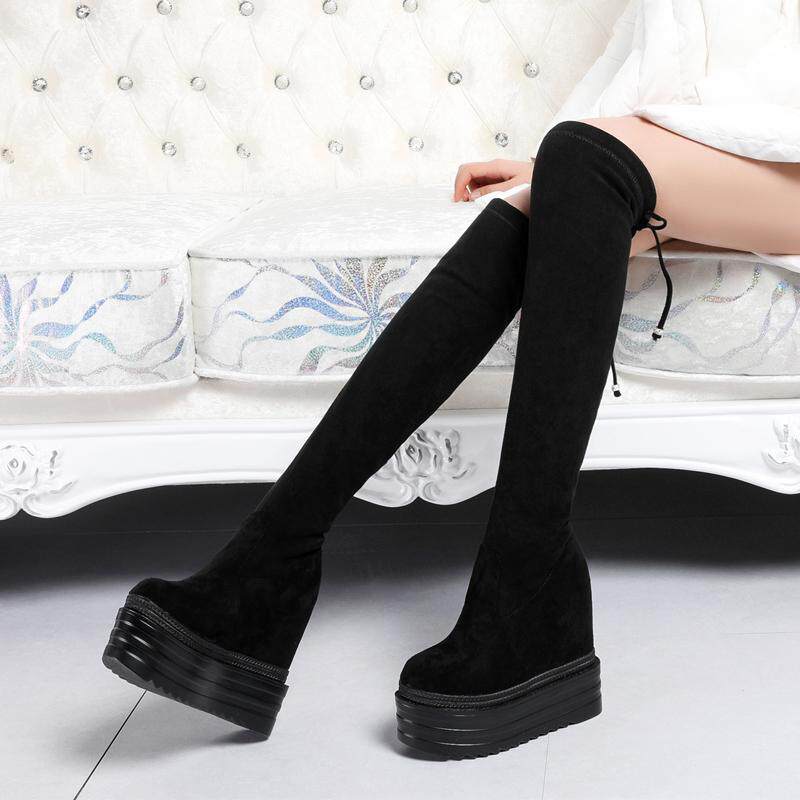 Красные замшевые сапоги выше колена с круглым носком женские модные высокие на