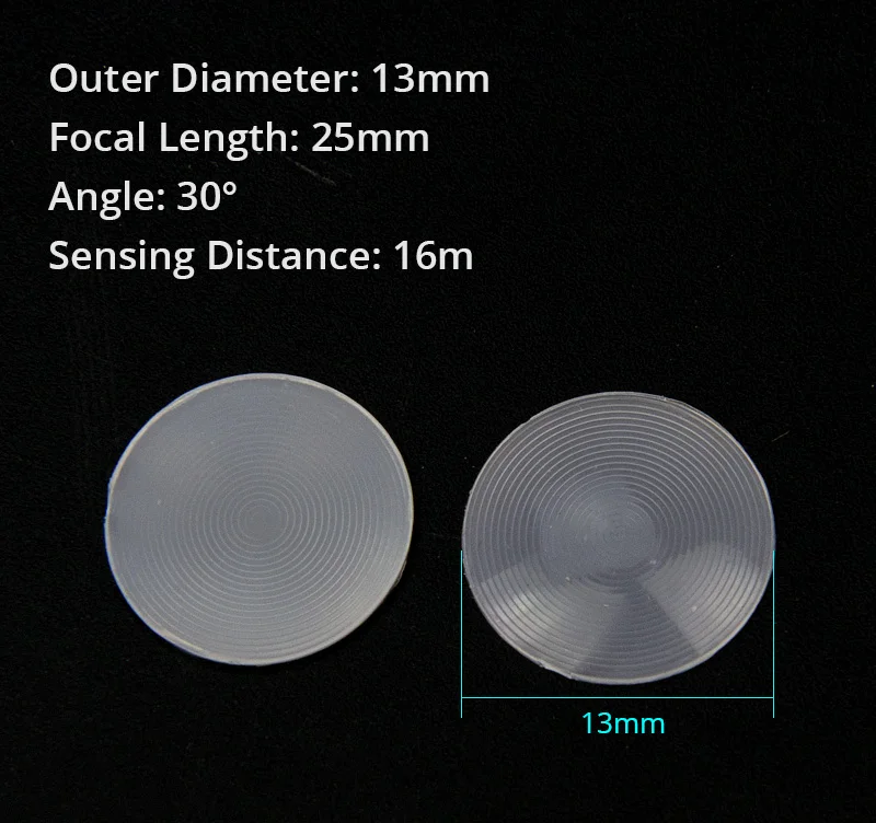 10 шт. 13 мм круглый человеческого тела инфракрасный чувствительный с линзой Френеля с регулируемой яркостью lLens фокусное Длина с фокусным расстоянием 25 мм объектив PIR корпус пиролиза зонд посвященный