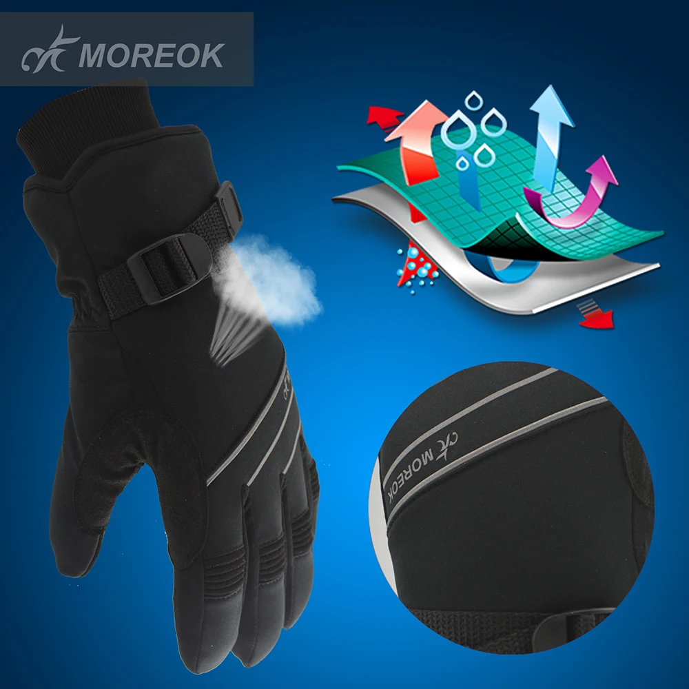 Лыжные перчатки MOREOK, 3 м, теплые, полный палец, сенсорный экран, зимние перчатки для велоспорта, отражающие велосипедные перчатки, ветрозащитные мотоциклетные перчатки для мужчин и женщин