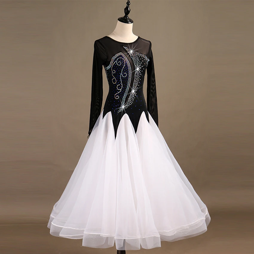 Черные, белые платья для конкурса бальных танцев, стандартные Бальные платья, стандартные танцевальные платья, светящиеся костюмы, бальный вальс, платье вальс, костюм танго