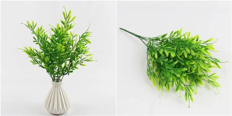 Название цветка: искусственная пластиковая трава Материал: пластик Цвет: зеленый Размер: около 30 см (общая длина) Структура: 1 ветка = 7 вилок травы Примечание: различные мониторы, разные цветовые эффекты, спасибо за понимание.