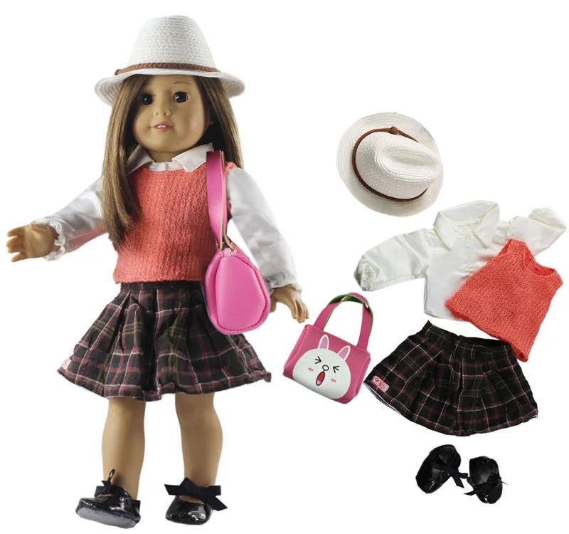 New 18 inch Doll Clothes Outfit Clothes+Glasses+Shoes+Bag for 18 inch American Girl Doll Many Style for Choice