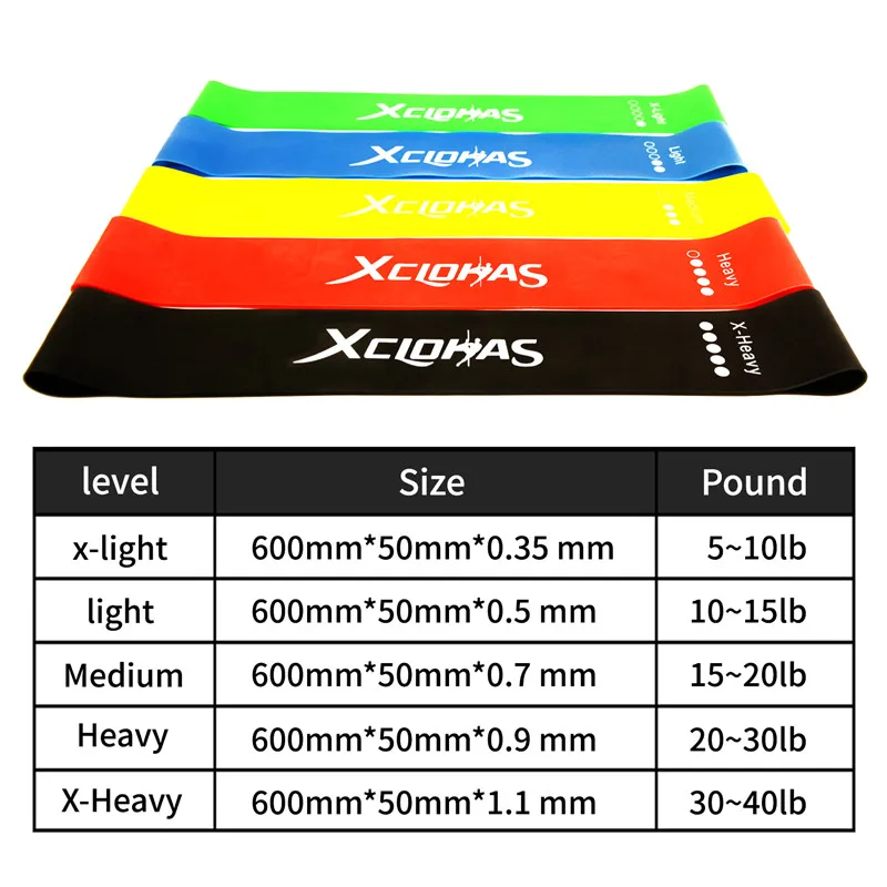 Эластичные ленты XC, 4 уровня, для тренировок, пилатеса, резиновых петель для бодибилдинга, 15-50 фунтов Тип A: Набор из 4 пастельных клейких лент предназначен для женщин, они были энергично озвучены и протестированы фитнес-энтузиастами, чтобы создать идеальный диапазон. Наши ленты изготовлены из высококачественного латекса и протестированы, чтобы выдерживать безопасную растяжку до 200% оригинальной длины. Параметры: Материал: натуральный латекс Цвет: розовый, розовый, фиолетовый, темно-фиолетовый Размеры: Светильник: 600x50x0,5mm,10-15lbd Внутренний слой: 600x50x0,7mm,15-20lbs Тяжелый: 600x50x0,9mm,20-30lbs X-Heavy:600x50x1,1 мм, 30-40 фунтов Посылка: 1 шт., браслет сопротивления
