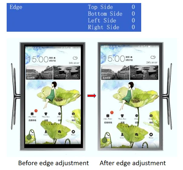 Мы отлаживаем устройство с Полноразмерным экраном Iphone, Ipad и Android в соответствии с TV box Apple и мобильный телефон с поддержкой HDMI. Поскольку на рынке существует множество беспроводных устройств с одинаковым экраном, различия в параметрах приведут к неправильному отображению изображений на мобильный телефон или черных краев. Если вы столкнулись с вышеуказанной ситуацией, вы можете отлаживать полный экран через функцию регулировки края.