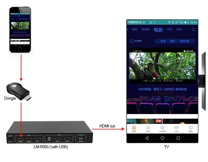 Применение 3:Добавьте ключ, Подключите мобильный сигнал к HDMI-2 порту с помощью ключа