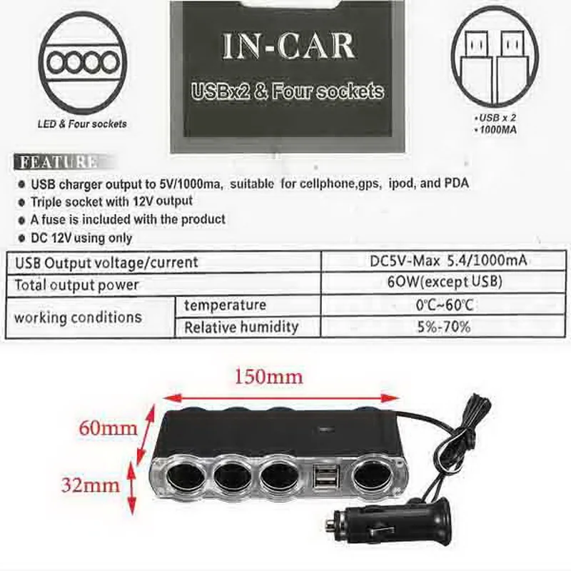 Качественный двойной/2 USB Автомобильное зарядное устройство адаптер питания 4-полосный расширитель для автомобильного прикуривателя сплиттер