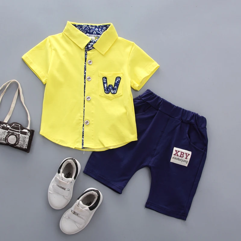 Новая летняя одежда джентльмена для маленьких мальчиков и девочек, детская хлопковая рубашка, шорты, 2 шт./компл., детская одежда с лацканами, повседневная спортивная одежда для От 0 до 4 лет