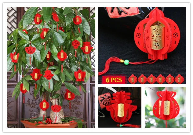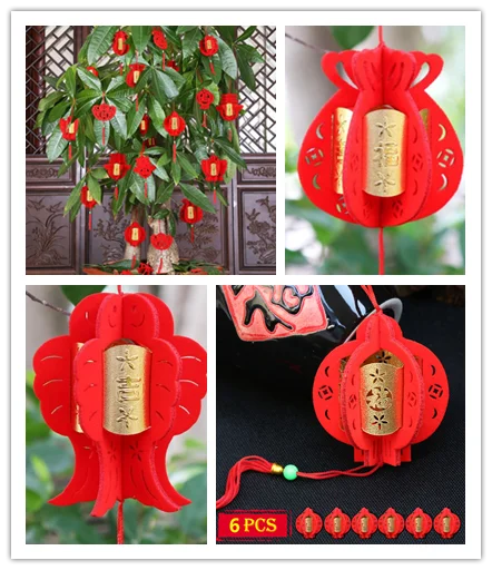Китайские Новогодние украшения 3D флокированные маленькие красные фонарики Весенний фестиваль висячие украшения Горшечное растение украшение