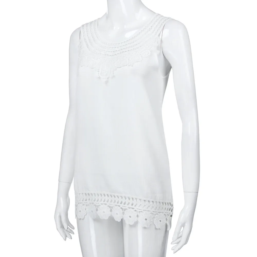 Женский однотонный кружевной жилет без рукавов, с круглым вырезом, свободного покроя, размера плюс