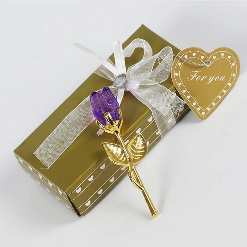 Серебряный/Золотой металлический длинный стебель с прозрачными/красными/розовыми/синими/фиолетовыми кристаллами Роза в подарочной коробке свадебный подарок бесплатная раздача подарков на вечеринке