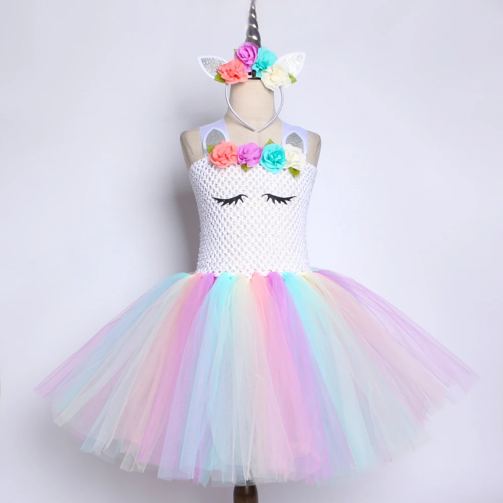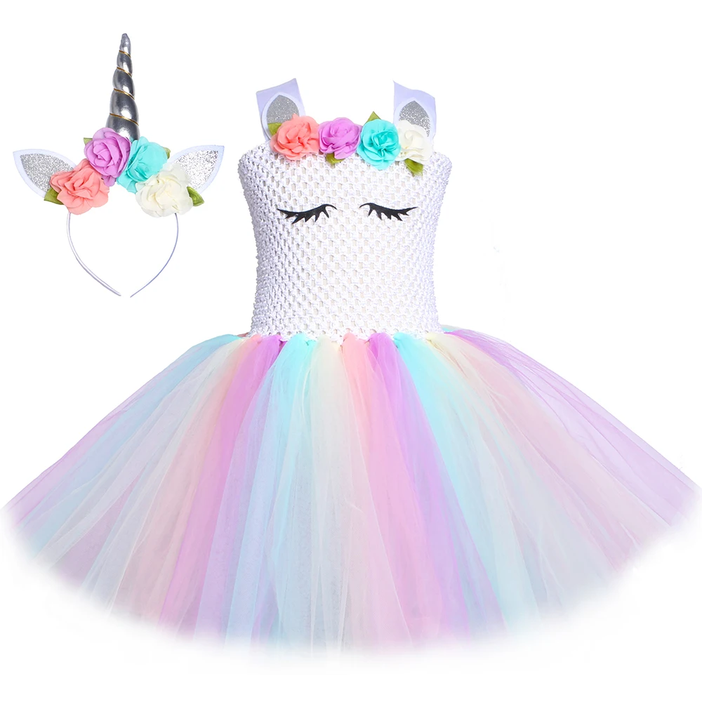 Пастельное платье-пачка с единорогом для девочек; Детские Вечерние Платья с цветочным рисунком для дня рождения; Нарядное платье из тюля для детей; Костюм на Рождество и Хэллоуин
