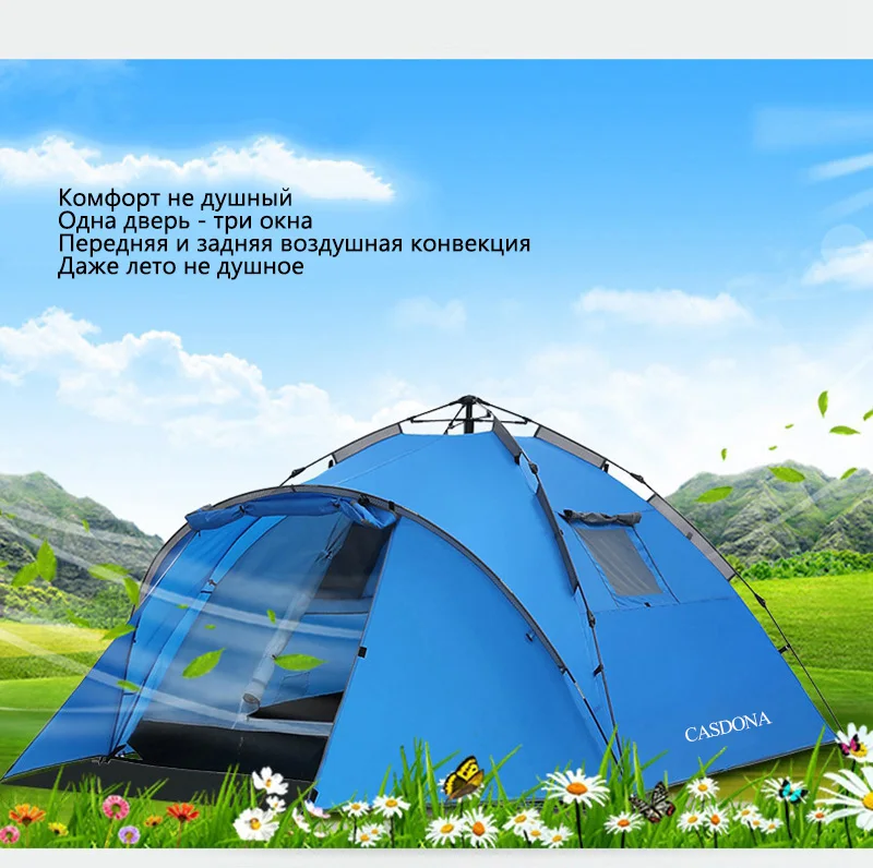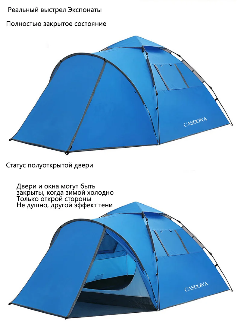 Туристическая палатка большого пространства двойная 3-4 человек палатка гидравлическая Автоматическая Водонепроницаемая 4 сезона открытая семейная Пляжная палатка для отдыха