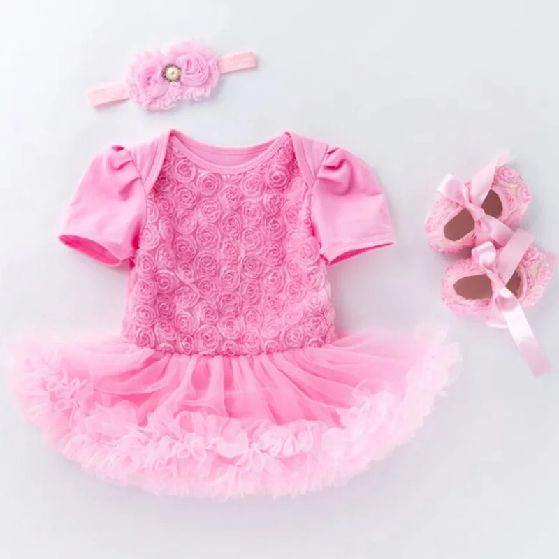 Одежда для девочек на День святого Валентина с объемным рисунком розы; Кружевное платье-комбинезон; Повязка на голову; Обувь для малышей; Комплекты с юбкой-пачкой для девочек на День рождения; Roupa Infantil Menina