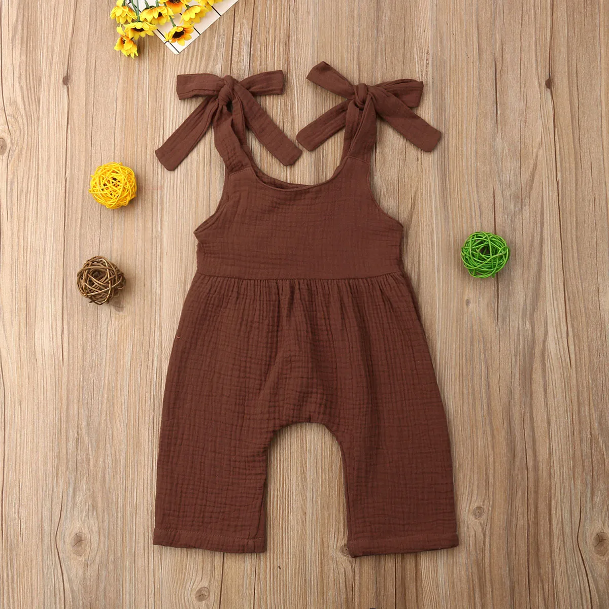 Милая Одежда для новорожденных девочек; Однотонный хлопковый комбинезон без рукавов на бретелях; Летний комбинезон для девочек и мальчиков