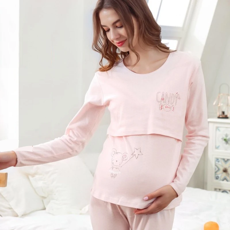 Пижама с длинными рукавами для мам и кормящих пижама беременных женщин 2