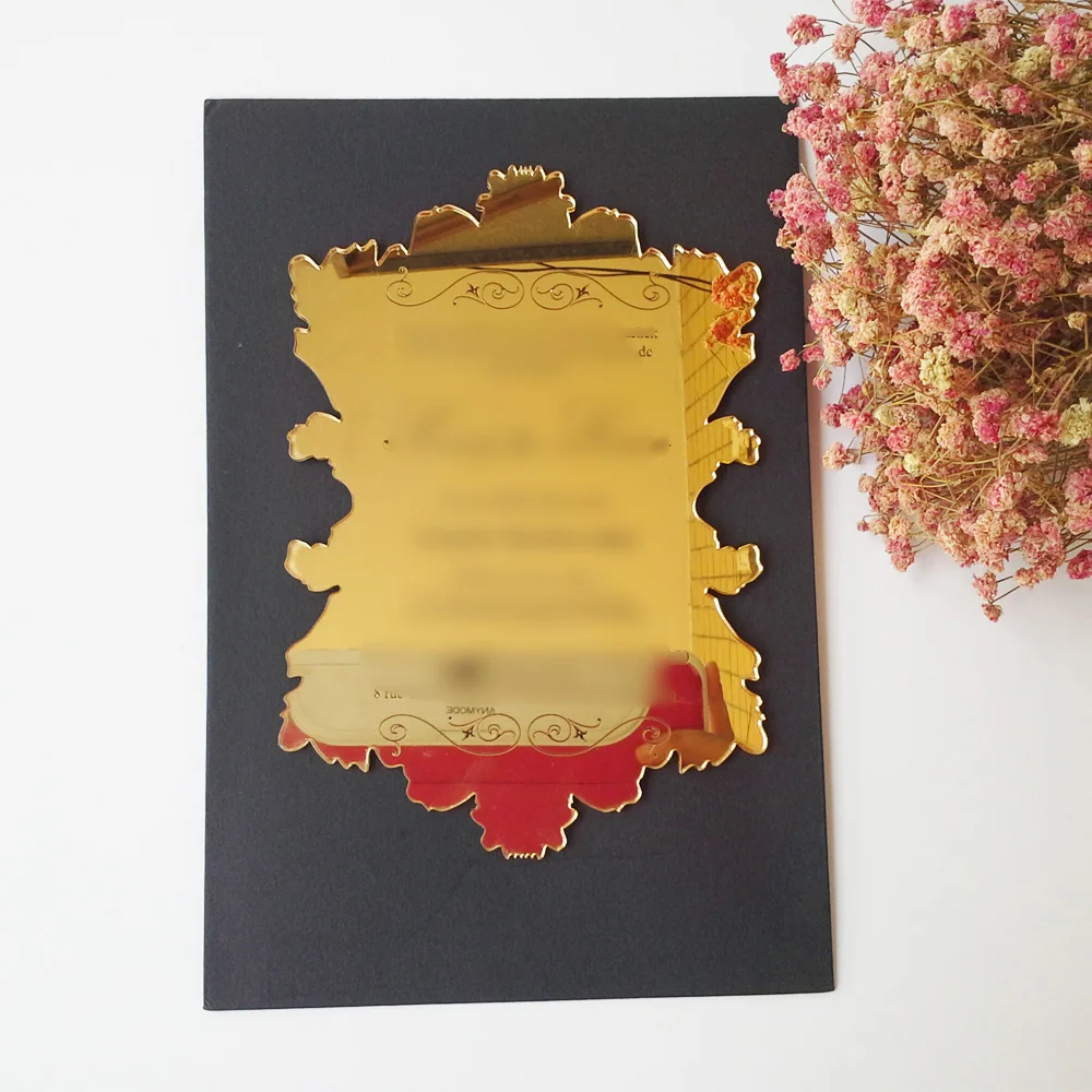 40 штук в партии 5*7 дюймов винтажная Золотая зеркальная акриловая Свадебная пригласительная открытка отправляется только в США