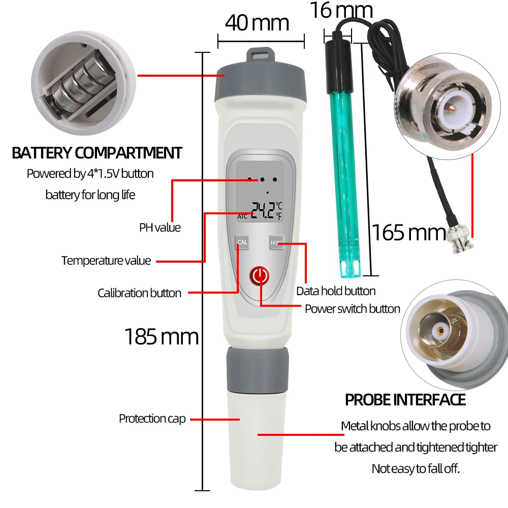 Диапазон измерений | PH: 0,1-14.0PH; Температура: 0-50°C 32-122F | PH: 0,01-14.00PH Температура: 0-50°C 32-122F | PH: 0,1-14.0PH; Температура: 0-50°C 32-122F | PH: 0,01-14.00PH Температура: 0-50°C 32-122F |