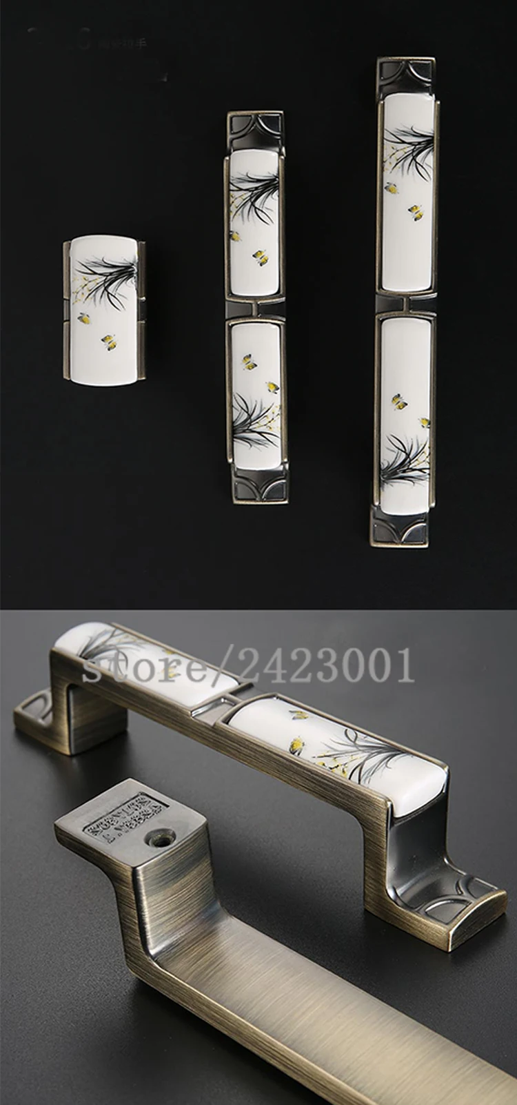 1 шт. новый дизайн античные бронзовые керамические ручки для шкафов из цинкового сплава ручки для ящиков шкаф дверные ручки Европейская сельская ручка