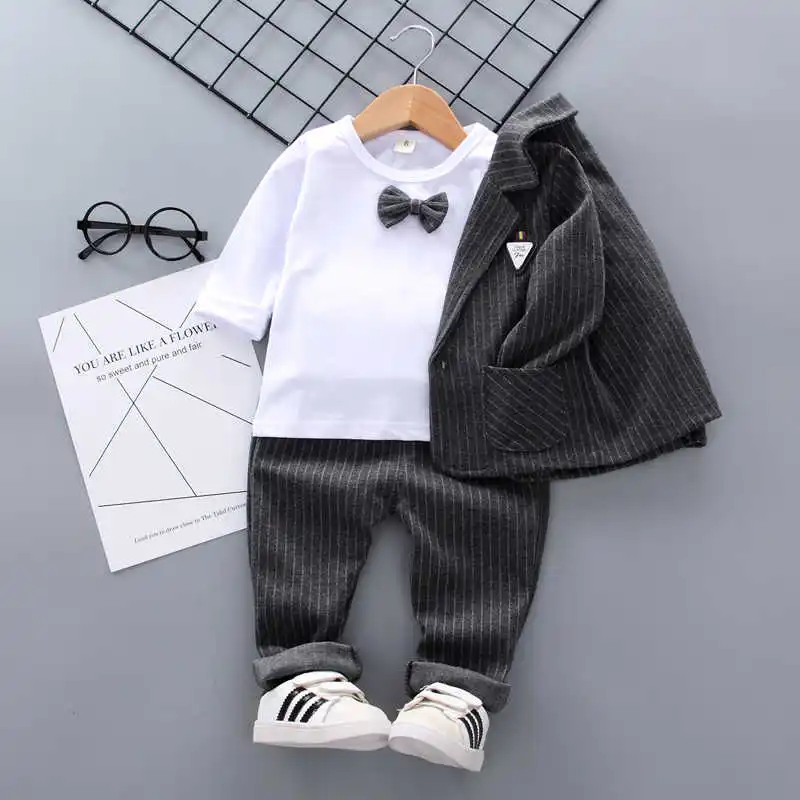 Новая весенняя детская бабочка Блейзер формальный хлопок джентльмен повседневные Костюмы для мальчиков куртки Футболка Брюки 3 шт./компл.