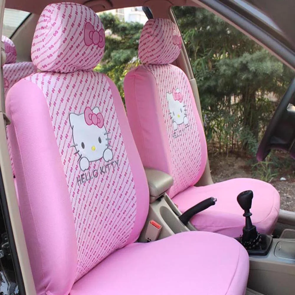 Универсальные чехлы на автомобильные сиденья с мультяшным розовым котом Hello Kitty, аксессуары для интерьера, автостайлинг