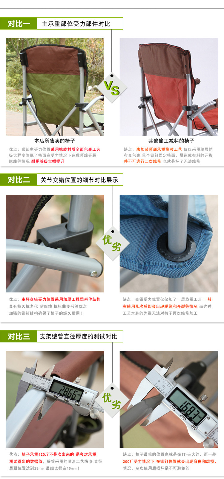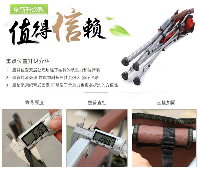 Материалы: высокопрочная лента 600D oxford Труба: лакокрасочная интегрированная скоростная открытая стальная конструкция кронштейна Диаметр трубки: основная трубка 22 мм, тисненая трубка 17 мм Вес: около 4.3kgs Подшипник: 210kgsРазмер в складку: 96*16 см Для: Призвание, повседневная, кемпинг, рыбалка