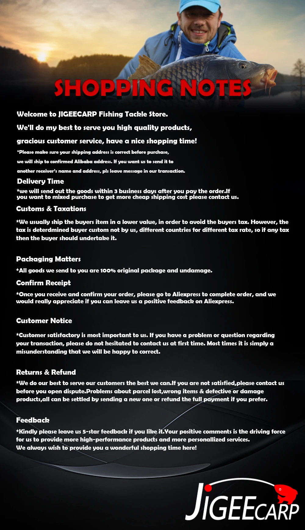 Магазина JIGEECARP Fishing Tackle Store работает с 10.01.2019. его рейтинг составлет 95.88 баллов из 100. В избранное добавили 14014 покупателя. Средний рейтинг торваров продавца 4.8 в продаже представленно 406 наименований товаров, успешно доставлено 19760 заказов. 8197 покупателей оставили отзывы о продавце.