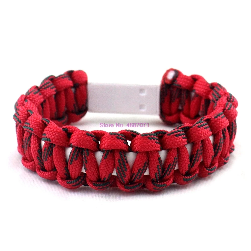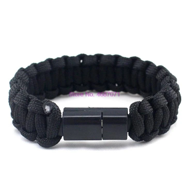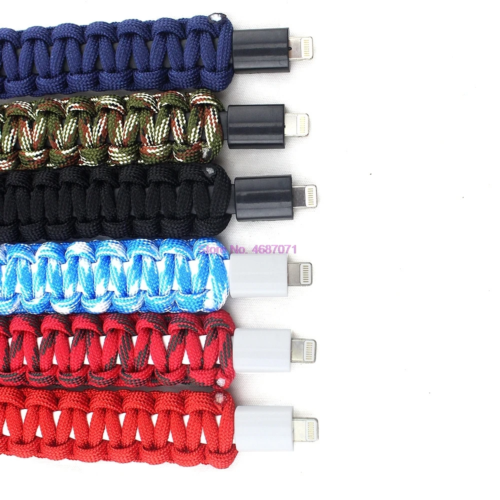 Supports charge and transfer data sync simultaneously. With standard USB 2.0 interface can transfer faster and more convenient. Made of quality nylon weave and silicone, which is durable and safe to use. Four color (Black, Blue, Camouflage and Iridescent) for your choice to suit your different style. Size: bracelet length 18cm / 6.5 inches