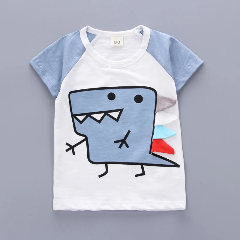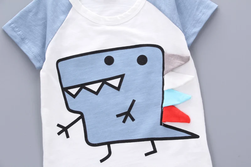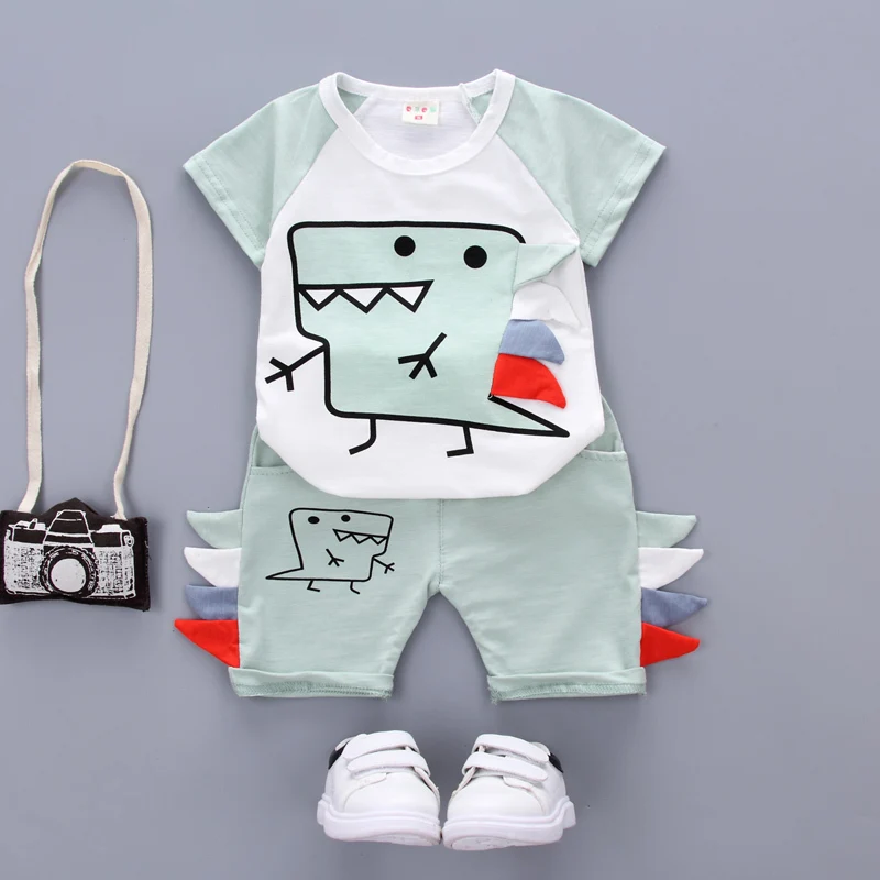 Летняя детская повседневная одежда для маленьких мальчиков и девочек; Новая Коричневая футболка с рисунком динозавра; Шорты; 2 шт./компл.; Детская спортивная одежда для От 0 до 4 лет