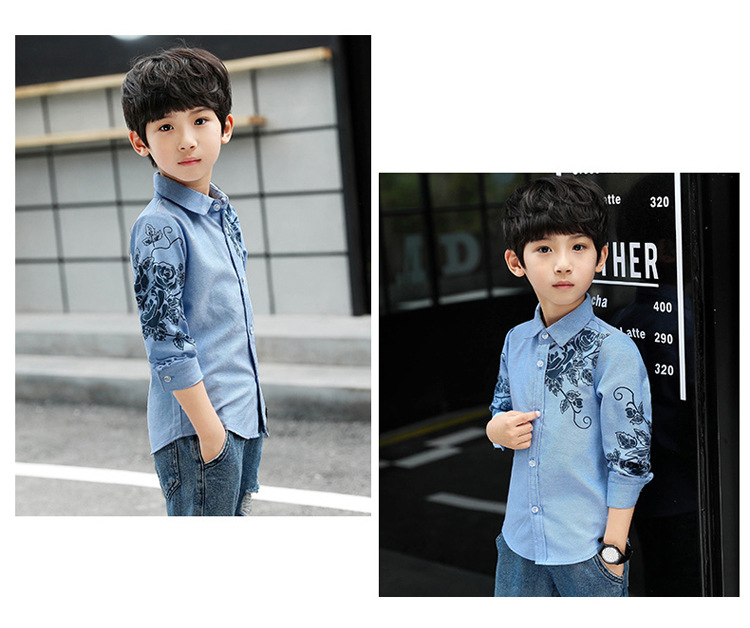 Детские блузки с принтом; Осенние рубашки с длинными рукавами для мальчиков; Хлопковая детская белая рубашка для мальчиков-подростков; Весенние топы с цветочным рисунком
