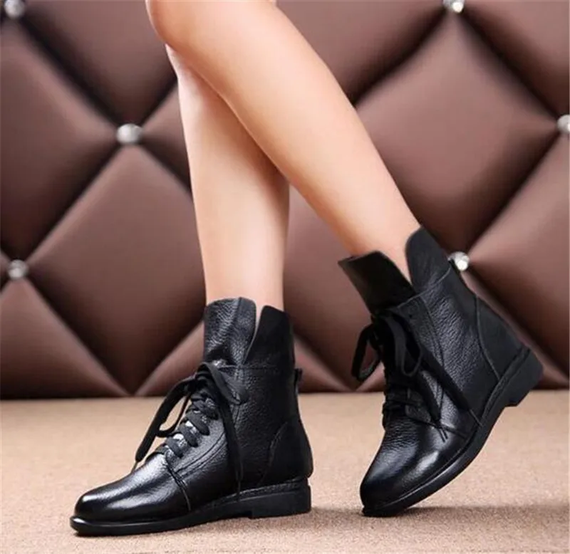 Вспомогательный внешний материал: первый слой из воловьей кожиВысота каблука:2,5 см + подъем 4,5 см = 7 смТонкие туфли: Внутри кожаЗимняя обувь: внутри короткий плюшМатериал подошвы: Резина