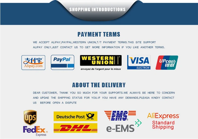 1: Fast Shipping Way: FedEx, DHL, TNT, EMS, e-EMS 2: Standard Shipping Way: AliExpress Standard Shipping, ePacket, Aramex, China Post Registered Air Mail.