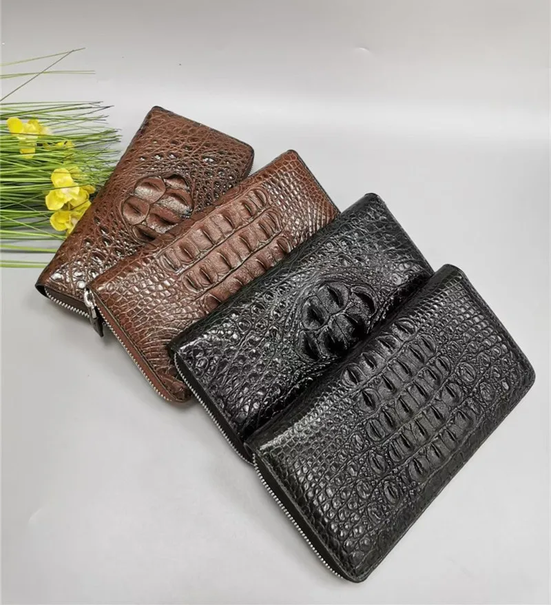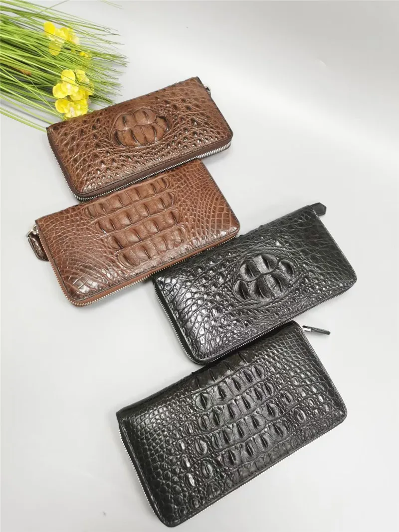 Мужской Длинный кошелек из натуральной кожи аллигатора на молнии, мужской клатч из натуральной крокодиловой кожи, большие держатели для карт